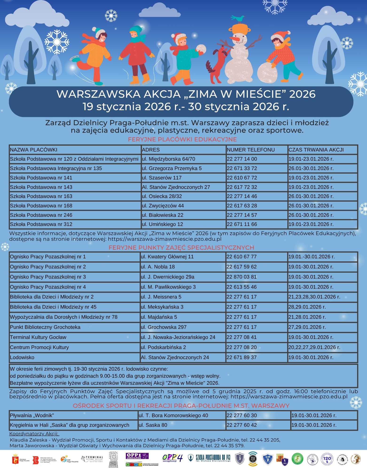Warszawska Akcja "Zima w Mieście" 19 stycznia – 30 stycznia 2026 r.