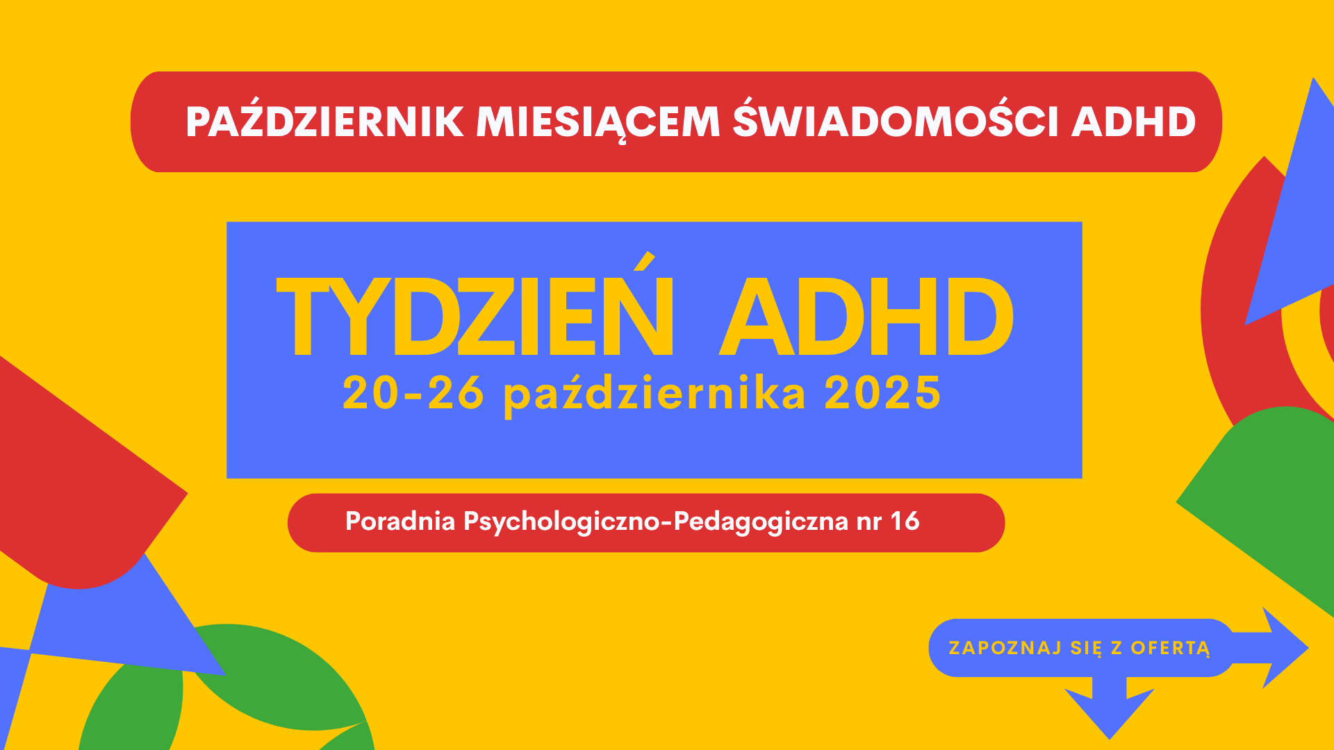 Z tej okazji Poradnia Psychologiczno-Pedagogiczna nr 16 w Warszawie serdecznie zaprasza mieszkańców Pragi-Południe na Tydzień ADHD, który odbędzie się w dniach 20–26 października 2025 r.