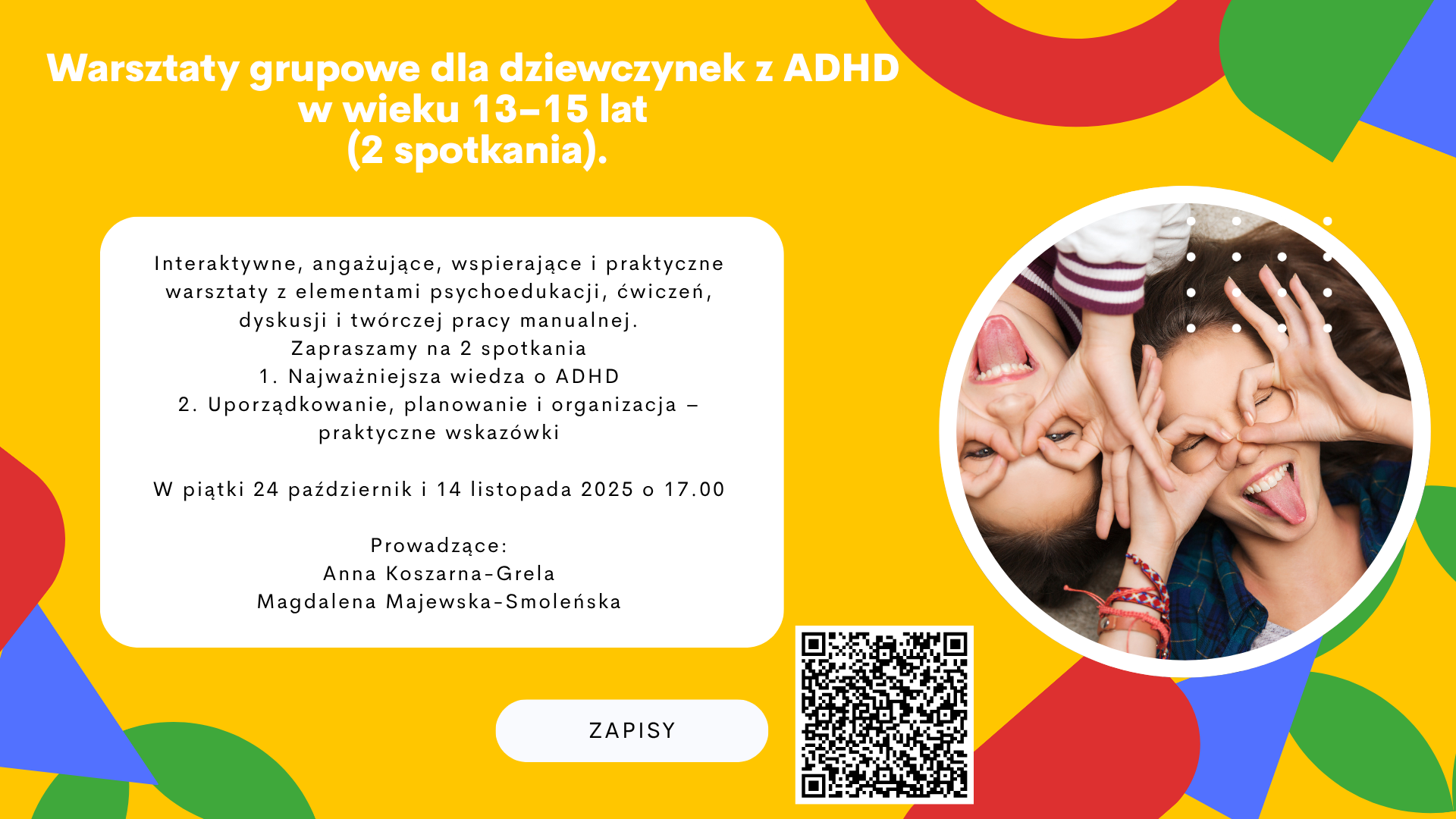 W ramach wydarzenia przygotowaliśmy cykl działań edukacyjnych i wspierających dla dzieci, młodzieży, rodziców oraz nauczycieli. Celem inicjatywy jest zwiększenie świadomości na temat zespołu nadpobudliwości psychoruchowej z deficytem uwagi (ADHD) oraz promowanie zrozumienia, akceptacji i skutecznych form wsparcia osób z tym zaburzeniem.